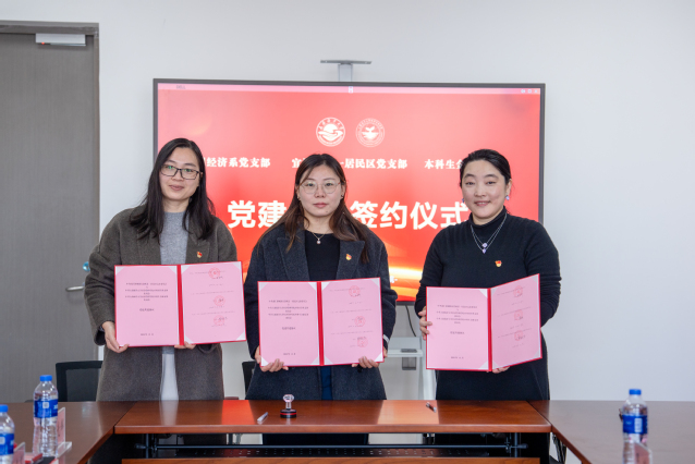 为深化区域化党建工作格局,推动高校智力资源与服务功能向社会基层延伸,促进校社党组织协同发展,2025年12月19日,中共南汇新城镇宜浩欧景一居民区支部委员会与中共上海海洋大学经济管理学院应用经济系支部委员会、中共上海海洋大学经济管理学院本科生金融支部委员会正式签署党建共建协议。此次共建是高校党组织主动融入地方、服务社会的重要实践,也是构建资源共享、优势互补、联动共赢的区域化党建新机制的有益探索。