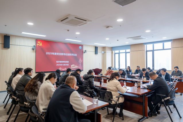 为贯彻落实新时代党的建设总要求,持续推进基层党组织标准化规范化建设,12月30日,经济管理学院党委组织召开2025年度党支部书记抓基层党建工作述职评议会。学院党委委员、全体师生党支部书记及党员代表参加会议。会议由学院专职组织员张闻主持。