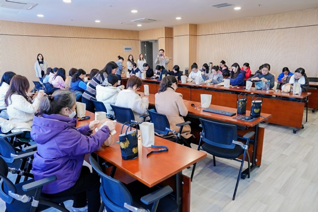 阳春三月,芳华绽放。为庆祝第116个“三八”国际妇女节,丰富女教职工精神文化生活,2026年3月10日,经济管理学院在文科大楼B608会议室举办“非遗牛皮包手工制作体验活动”。学院女教职工欢聚一堂,在指尖匠心与传统技艺中共度温馨时光。