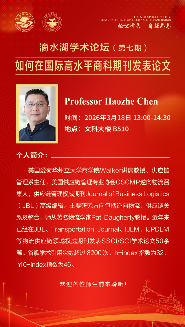 滴水湖学术论坛(第七期)丨Professor Haozhe Chen:如何在国际高水平商科期刊发表论文