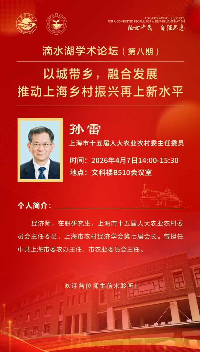 滴水湖学术论坛(第八期)丨孙雷:以城带乡,融合发展,推动上海乡村振兴再上新水平