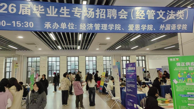 2026年4月7日下午,上海海洋大学2026届毕业生专场招聘会(经管文法类)在文科大楼一楼顺利举行。本次招聘会由学校经济管理学院、爱恩学院和外国语学院联合承办,为毕业生与用人单位搭建了高效对接的就业桥梁。