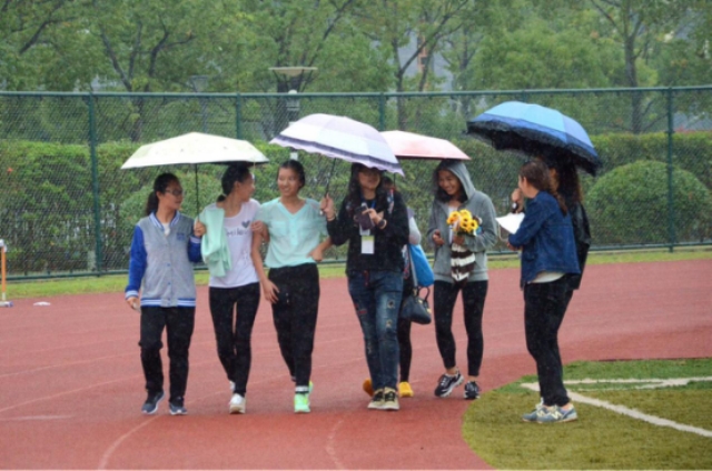 2016年10月20日,上海海洋大学2016年运动会的第一天,在绿茵场上出现了这样感人的一幕:学生组女子1500米比赛中,数十名同学在风雨中跟随着一位参赛同学一路奔跑,声声呐喊助威响彻操场。