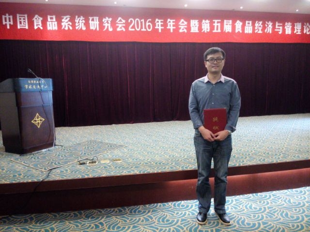 我校教师参加中国食品系统研究会2016年年会并获得优秀论文奖