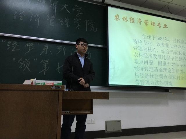2016年11月28日,我院农经学发于4308教室成功举办了“经梦”系列活动“领”第七期活动,2014级农经专业林琦、李奥楠作为领梦人受邀参加本次活动,2016级农经专业学生参与此次活动。