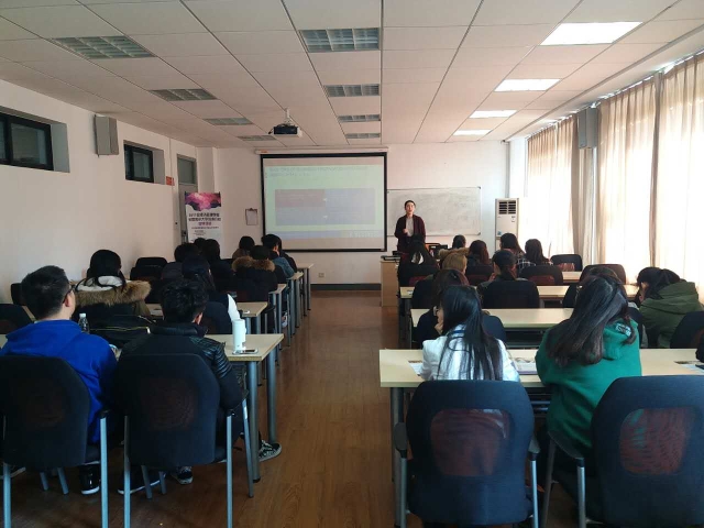 3月14日,美国加州大学河滨分校招生代表姚青月在经管学院楼111教室宣讲,我院学生积极报名参与。