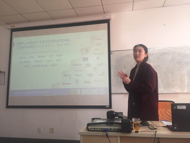 姚老师首先对加州大学河滨分校及研究生商学院进行简单介绍,重点针对同学们感兴趣的“3+1+1”项目进行详细介绍和解读,结合咨询群里同学提出的问题,在现场与同学们面对面交流,做出进一步解答。最后,姚老师向同学们介绍了项目申请所需材料及流程。宣讲会现场,同学们积极踊跃提出问题,对本次留学项目表现出浓厚兴趣。