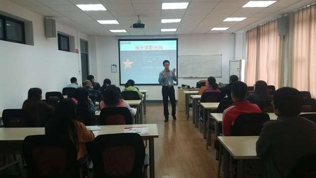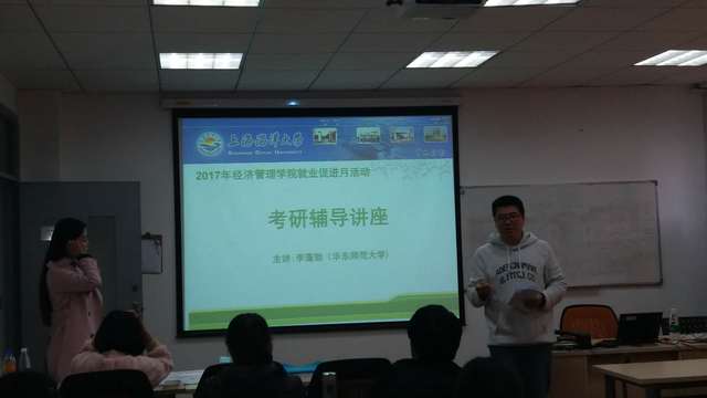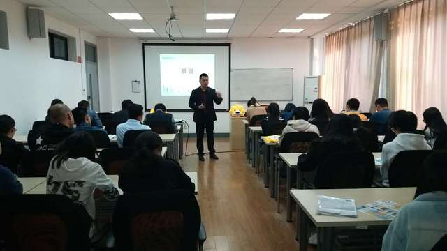 考研培训、公务员考试培训、出国留学培训在学院楼111如期举行。考研培训主要针对大四正在备战考研和大三有意愿的同学,也有部分其他年级同学积极参与。针对考研的同学,万学教育高级咨询主管李蓬勃老师为大家分析全国重点高校,特别是上海各个高校,考研院校专业报录难度和数据,梳理研究生考试的准备、选择、考试等各个环节的注意事项。针对选择备考公务员的的同学,中公教育宁鑫老师,以他丰富的教学经验,对上海市题型特点及整体具的深入研究,给同学们分享了学习心得及要领,为备战公务员考试的同学提供了很多宝贵信息。而对于考虑出国留学的同学,朗阁教育的Jason从如何备考、如何择校等方面给同学们讲授留学的经验和注意事项,以及雅思英语考试方法和技巧。