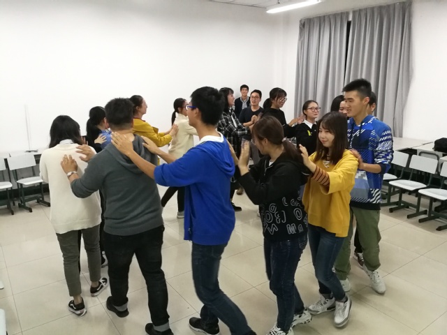 10月的临港气温已慢慢下降,刚进教室,同学们微凉的手在老师带领的游戏中被对方捂得暖暖的,这份温暖与力量也传递到了每一位新生班委的心里。在老师的引导下,每一位班级骨干都逐渐正视自己存在的问题;同时,调整好了自己的心态。他们结识了许多与自己担任同样职位的伙伴们,相互沟通、彼此了解。这些小游戏也使大家的内心受到了鼓舞,他们对接下来要面对、解决的困难多了一份坚定和自信。