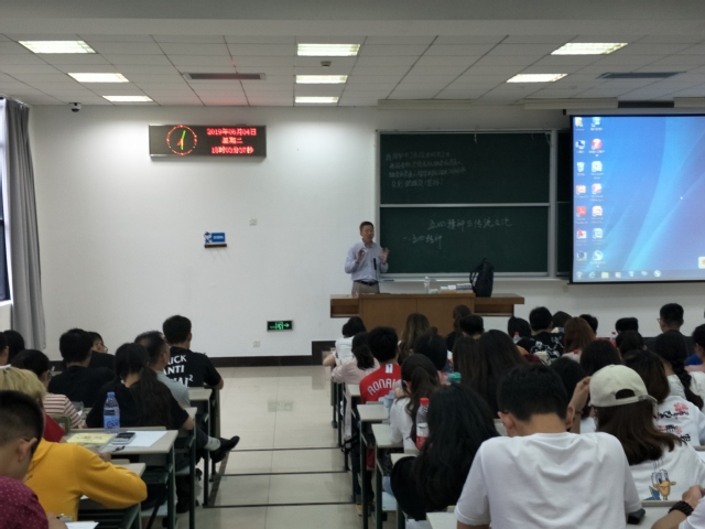 2019年6月4日晚上18时,在上海海洋大学1教101大教室,应经济管理学院“形势与政策”课程工作室邀请,上海电机学院马克思主义学院院长何小刚教授作了题为《五四精神与传统文化》的“形势与政策”报告。此次讲学的听众为2016、2017、2018经管学院相关专业本科生,共计260余人。整个报告内容丰富、资料详实、讲授精彩。