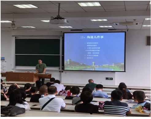 李老师他侧重从学院现设专业、专业课程设置、专业培养方案、学科发展情况等方面进行了介绍,并表示学院将义无反顾的履行培养新生的责任,与家长一起关注学生的学习、生活等各方面,推动学生成长成才。